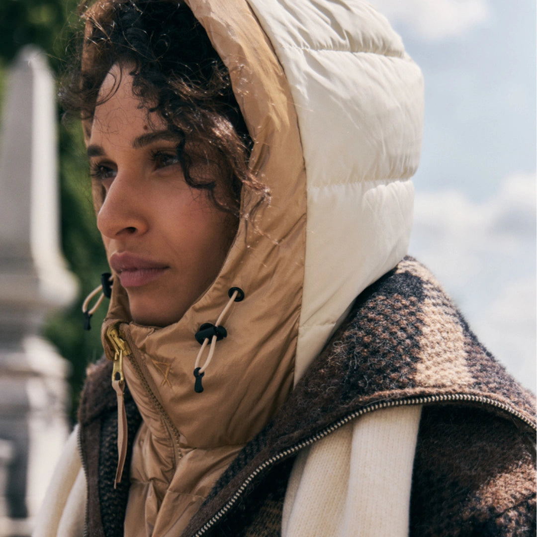 Fudoon est une capuche en doudoune conçue pour vous protéger de la pluie, du froid et du vent : elle vous couvre la poitrine, la gorge, la nuque et la tête. Réversible et nomade, nous l'avons pensée pour vous faciliter la vie et vous accompagner partout au quotidien.