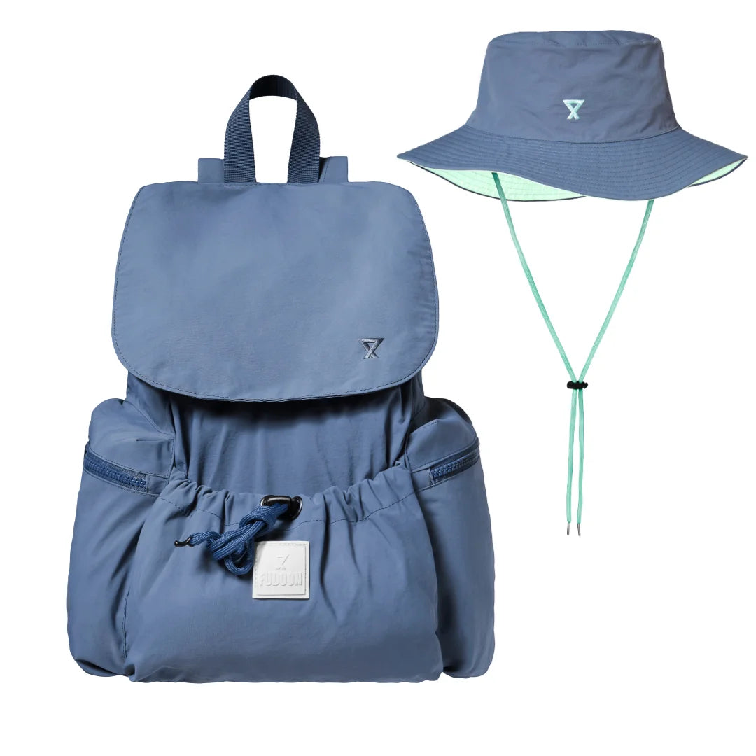 Lightweight, practical, and ultra-functional, this bag and reversible hat will go with you everywhere. Foldable and water-repellent, these rain accessories complement the Fudoon Fudini hood collections Fudini offer you optimal protection in any weather—with style!
