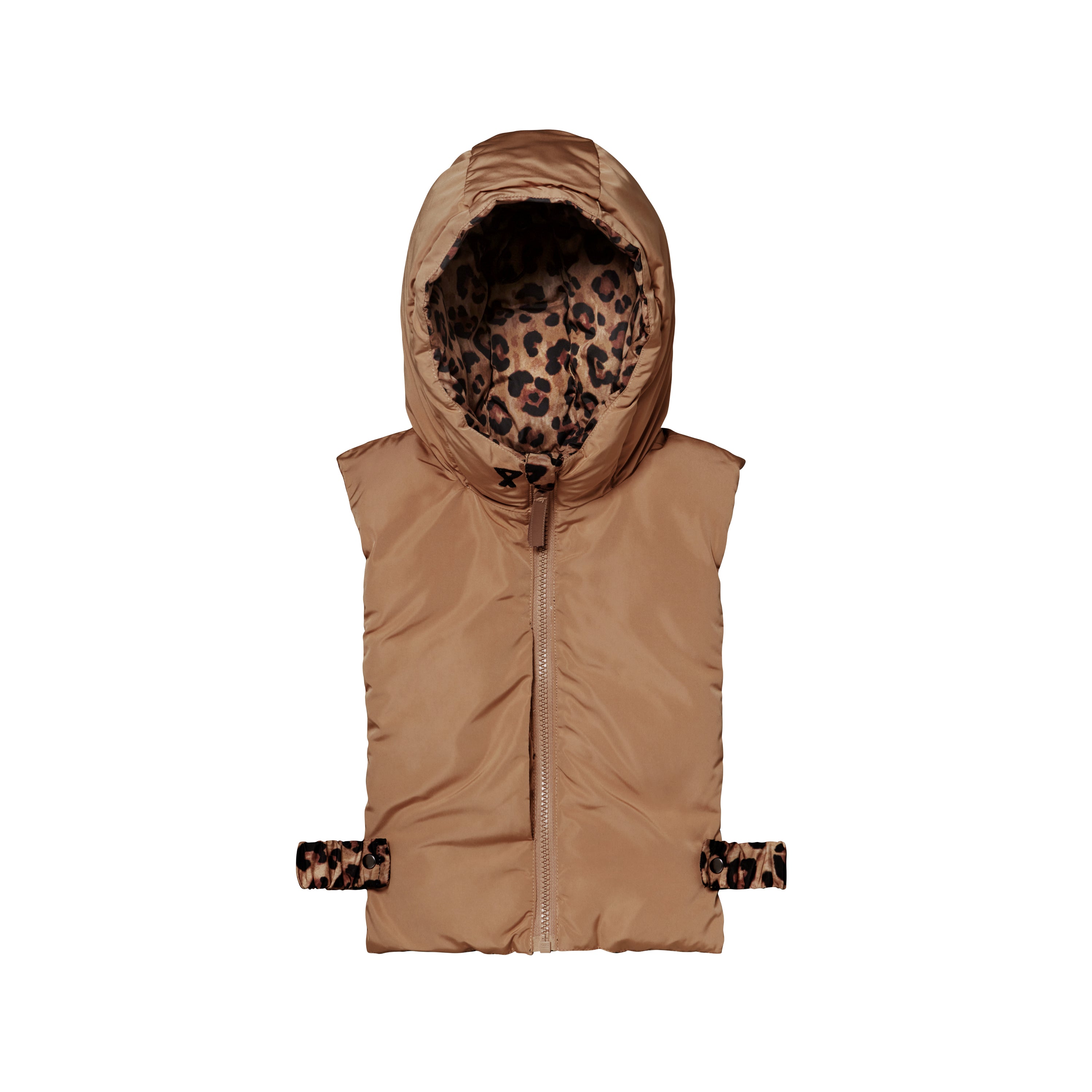 Capuche doudoune enfant léopard et beige