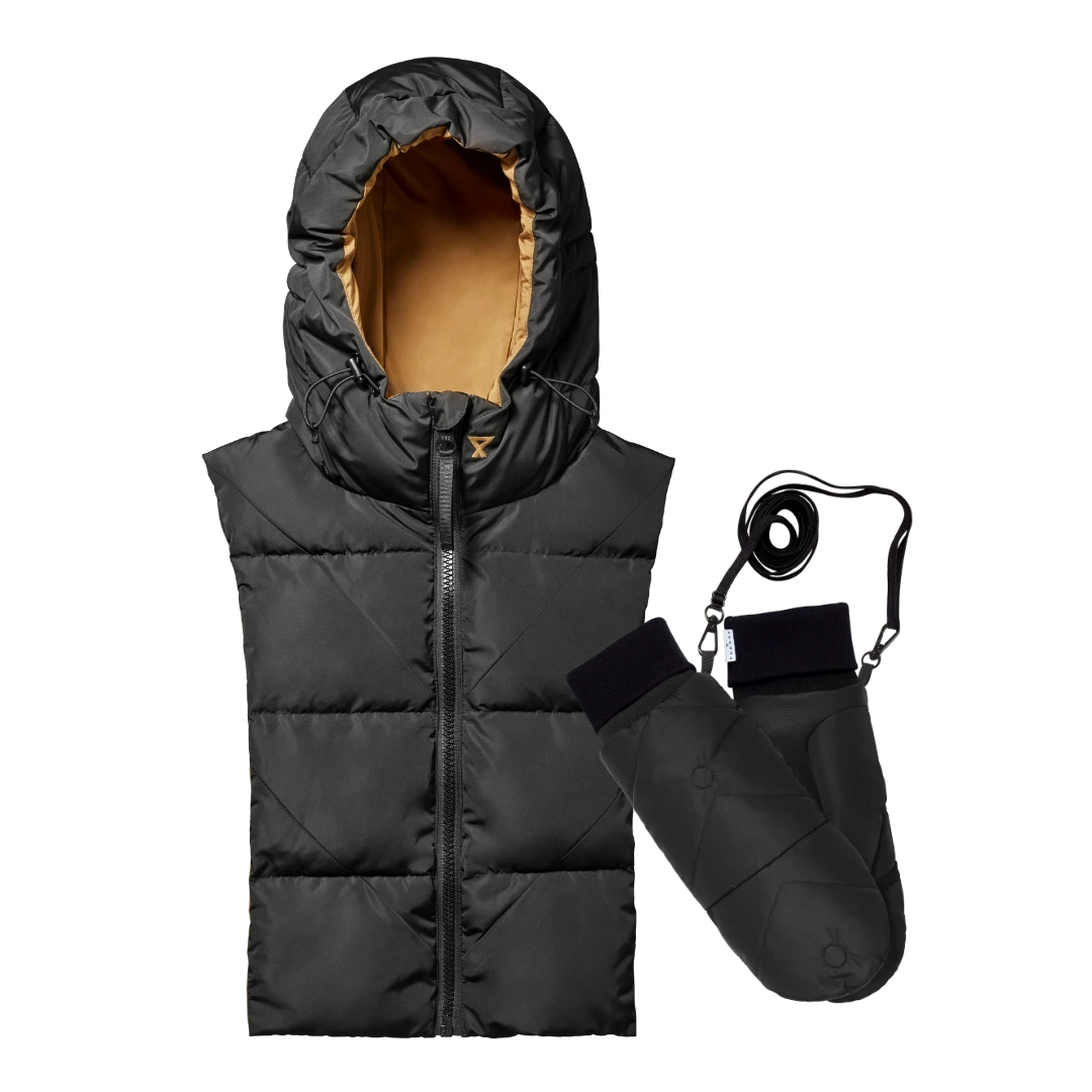 An irresistible and practical duo: the Fudoon hood and matching convertible Moofles mitts are designed to protect you from rain, cold and wind and accompany you everywhere you go.