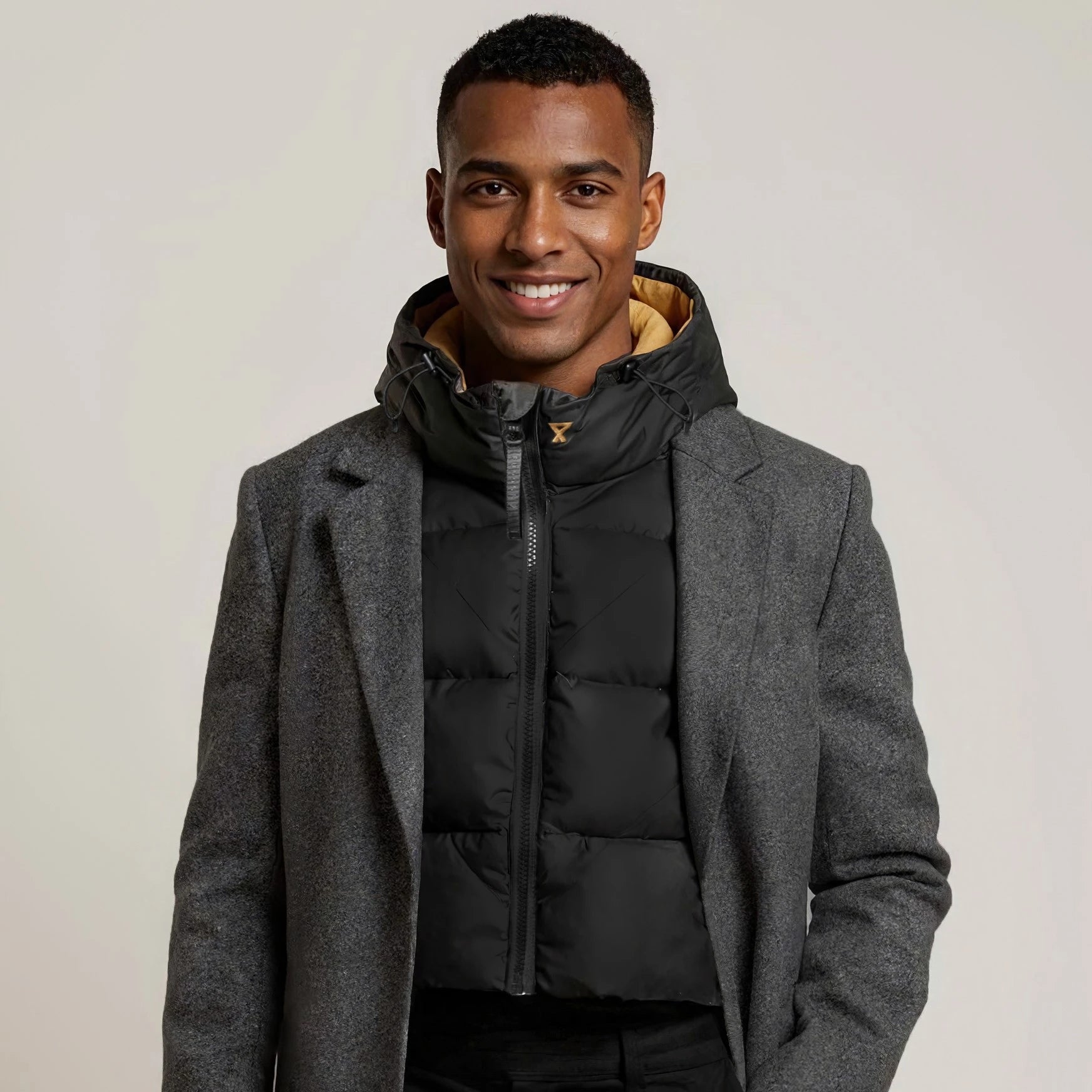Fudoon est une capuche en doudoune conçue pour vous protéger de la pluie, du froid et du vent : elle vous couvre la poitrine, la gorge, la nuque et la tête. Réversible et nomade, nous l'avons pensée pour vous faciliter la vie et vous accompagner partout au quotidien.
