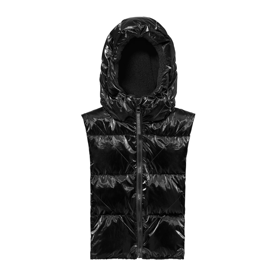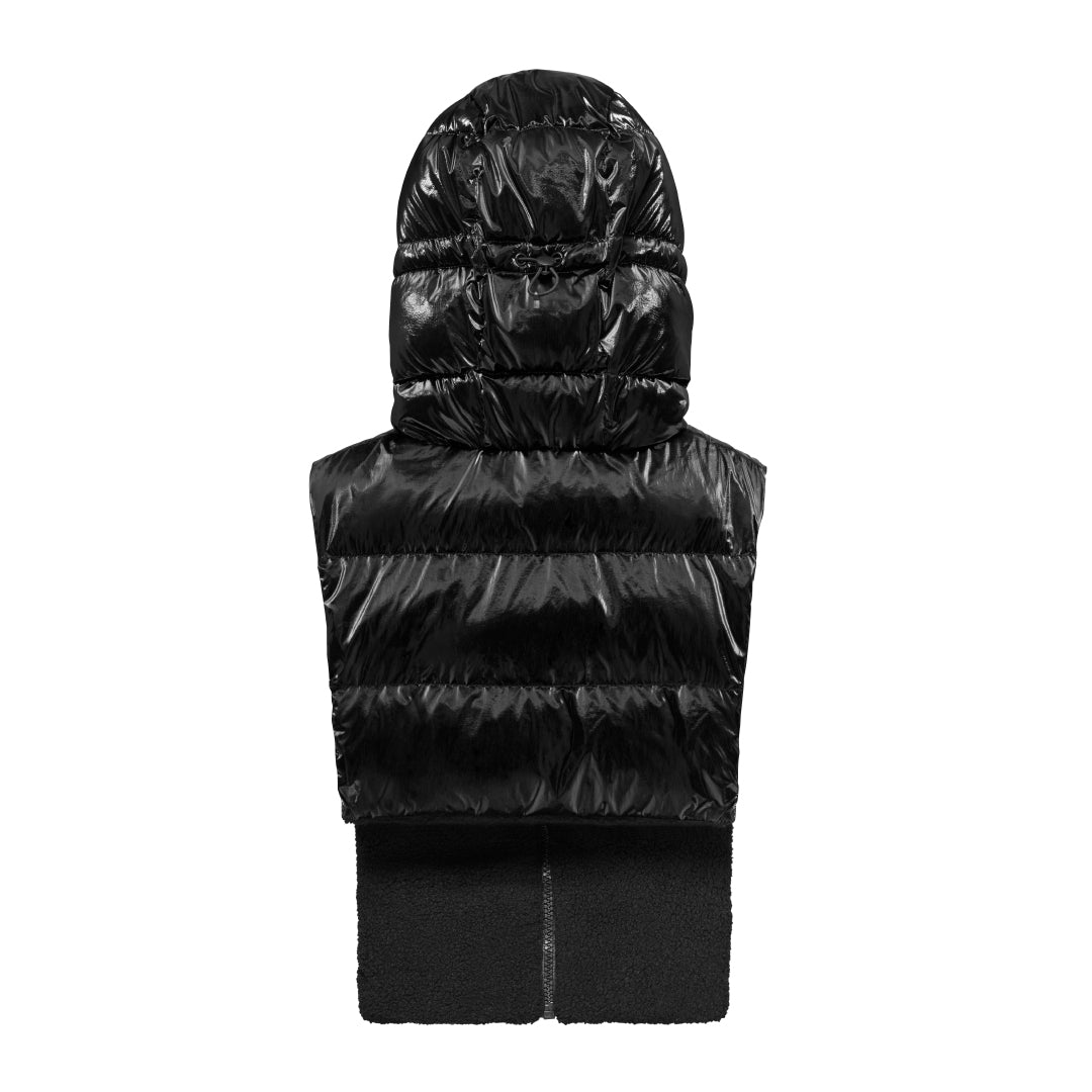Cette Fudoon noir vinyle matelassé, avec son intérieur en sherpa, s'associe facilement aux pièces de votre garde-robe : manteau en drap de laine, trench, veste en denim... elle vous protège à travers les saisons.