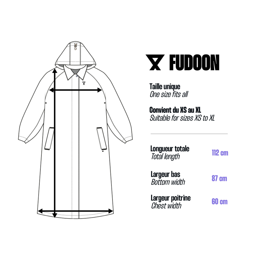 Fudoon est très fière de vous présenter son tout premier manteau de pluie imperméable : l’élégance du trench-coat combinée à la technicité d’un vêtement de pluie et adaptée à l’usage des 2 roues. Une coupe classique, sophistiquée, vintage, qu’on a envie de porter tout le temps, pas seulement quand il pleut.